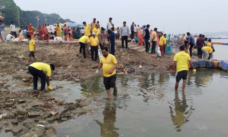 छठ पूजा से पूर्व अरैल घाट पर सरस्वती परिवार ने चलाया स्वच्छता अभियान मां गंगा की गोद में स्वच्छता का संदेश — डॉ. सुनीता विश्वकर्मा के नेतृत्व में चला अभियान