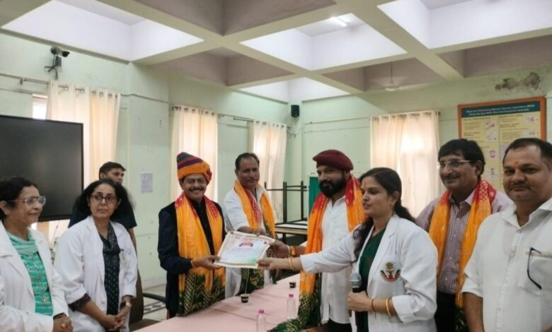 जयपुर। ब्लड डोनेशन कैंप में जनाना हॉस्पिटल को आमंत्रित किए जाने और रक्तवीरों द्वारा जनाना ब्लड बैंक को रक्तदान किए जाने के अवसर पर एक विशेष कार्यक्रम का आयोजन जनाना हॉस्पिटल, चांदपोल में किया गया। इस कार्यक्रम में अजीत कुमार शर्मा को आमंत्रित कर सम्मानित किया गया। कार्यक्रम के मुख्य अतिथि सिविल लाइन विधायक गोपाल शर्मा रहे, जिन्होंने अजीत कुमार शर्मा को प्रशस्ति पत्र प्रदान कर सम्मानित किया। इस अवसर पर डॉ. नुपुर लारिया, सुपरिटेंडेंट जनाना हॉस्पिटल, डॉ. सरिता शर्मा, ब्लड सेंटर जनाना हॉस्पिटल सहित एम हॉस्पिटल का पूरा स्टाफ उपस्थित रहा।