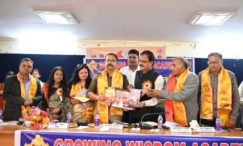 हल्द्वानी।उत्तराखंड स्थापना दिवस की रजत जयंती के अवसर पर ग्रोइंग विजडम एकेडमी एवं संपर्क संस्थान के संयुक्त तत्वावधान में “ज्ञान से सशक्तिकरण – ग्रोइंग विजडम यूनिटिएटिव” कार्यक्रम का भव्य आयोजन नगर निगम सभागार में किया गया। इस अवसर पर “ख्वाबों का गुब्बारा भाग-2” पुस्तक का लोकार्पण, नर्सरी टीचर्स ट्रेनिंग की ट्रेनी शिक्षिकाओं का सम्मान तथा बाल मनोविज्ञान और स्किल डेवलपमेंट पर परिचर्चा का आयोजन मुख्य आकर्षण रहे।कार्यक्रम का शुभारंभ दीप प्रज्वलन के साथ हुआ। दीप प्रज्वलन मुख्य अतिथि हिमांशु दुर्गापाल (ब्रांच हेड, नैनीताल बैंक), कार्यक्रम अध्यक्ष अनिल लढ्ढा (अध्यक्ष, संपर्क संस्थान), महासचिव सुनील अग्रवाल, कोषाध्यक्ष परमानंद चावला, वरिष्ठ साहित्यकार गजेन्द्र बटोही, दामोदर जोशी ‘देवांशु’ और ललिता कापड़ी (डायरेक्टर, ग्रोइंग विजडम एकेडमी) ने संयुक्त रूप से किया।कार्यक्रम में विशिष्ट अतिथि के रूप में नगर पुलिस अधीक्षक जगदीश चंद्र उपस्थित रहे। उन्होंने राज्य स्थापना दिवस की शुभकामनाएं देते हुए उत्तराखंड के विकास में शिक्षा और महिला सशक्तिकरण की भूमिका पर अपने विचार रखे।