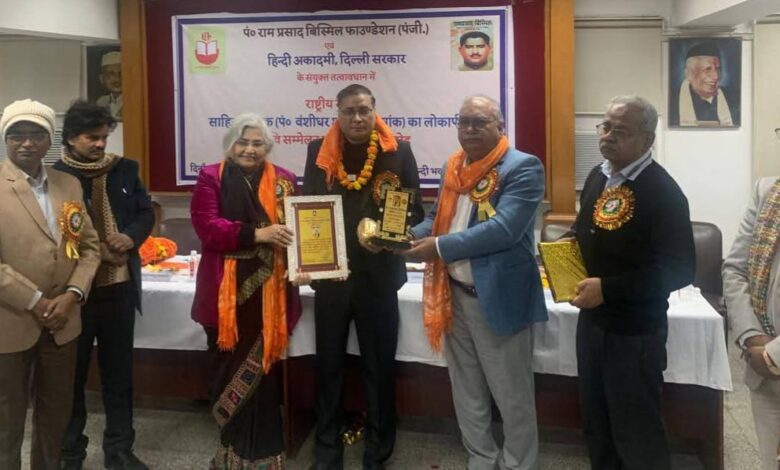 नई दिल्ली। पंडित दीनदयाल मार्ग पर स्थित हिन्दी भवन में पं. रामप्रसाद बिस्मिल और उनके साथियों का स्वतंत्रता संग्राम में योगदान विषय पर राष्ट्रीय संगोष्ठी, पं. वंशीधर शुक्ल विशेषांक साहित्य सप्तक का लोकार्पण और सम्मान समारोह का आयोजन हुआ। इस अवसर पर एक कवि सम्मेलन का आयोजन भी किया गया।