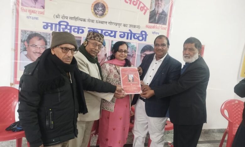 गोरखपुर। देव दीप साहित्य संगम की मासिक गोष्ठी माह के अंतिम रविवार को विश्वकर्मा मंदिर, गोरखनाथ, गोरखपुर में गरिमामय वातावरण में आयोजित की गई। कार्यक्रम संरक्षक शिवकुमार शर्मा, सचिव नंद लालमणि त्रिपाठी एवं अध्यक्ष दिनेश गोरखपुरी के कुशल निर्देशन में सफलतापूर्वक संपन्न हुआ। कवि गोष्ठी में चन्द्रगुप्त वर्मा ‘अकिंचन’, आश्विनी द्विवेदी, अजय यादव, कृष्णा श्रीवास्तव, अभय श्रीवास्तव, सुमन झा, बंदना मिश्रा, बिंदू, दानिक, डॉ. भारतेन्द्र सिंह, अरविंद शर्मा, निर्मल कुमार गुप्त, राघवेन्द्र मिश्र, प्रेमचन्द्र, राजेश मृदुल, पवन श्रीवास्तव एवं राजेन्द्र कुमार सिंह सहित अनेक कवि एवं साहित्यकारों ने सहभागिता की।