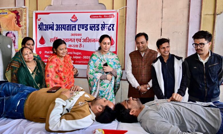 जयपुर। सीकर रोड स्थित श्री स्वयंवर मैरिज गार्डन, मुरलीपुरा में रविवार को हरि ओम जनसेवा समिति, जयपुर एवं अम्बे अस्पताल, जयपुर के संयुक्त तत्वावधान में विशाल निःशुल्क चिकित्सा एवं रक्तदान महाशिविर का भव्य आयोजन किया गया। इस जनसेवा अभियान में राजस्थान की उपमुख्यमंत्री श्रीमती दिया कुमारी ने विशेष रूप से शिरकत कर कार्यक्रम की गरिमा बढ़ाई। शिविर के दौरान रक्तदान शिविर में कुल 159 यूनिट रक्त संग्रहित किया गया, वहीं 1365 लोगों ने निःशुल्क स्वास्थ्य परामर्श का लाभ लिया। शिविर में विभिन्न रोगों की जांच के साथ-साथ जरूरतमंदों को निःशुल्क दवाइयां भी वितरित की गईं। सुबह से ही शिविर स्थल पर बड़ी संख्या में नागरिकों की उपस्थिति रही।