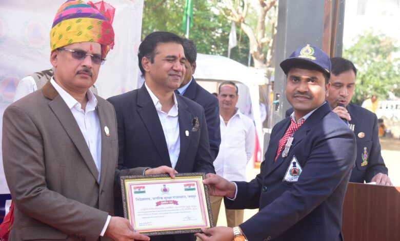जयपुर। दिनांक 06 दिसम्बर 2025 को निदेशालय नागरिक सुरक्षा राजस्थान, जयपुर परिसर में नागरिक सुरक्षा का 63वाँ स्थापना दिवस धूमधाम से मनाया गया। इस राज्य स्तरीय आयोजन में जयपुर डिवीजन 09 के प्रभाग वार्डन सुशील कुमार प्रजापत को उनके सराहनीय और उत्कृष्ट सेवाभाव के लिए सम्मानित किया गया।उन्हें यह सम्मान भास्कर ए. सावंत (गृह विभाग के अतिरिक्त मुख्य सचिव, डॉ. जितेन्द्र कुमार सोनी जिला कलेक्टर, जयपुर तथा जगजीत सिंह मोंगा (निदेशक, नागरिक सुरक्षा, राजस्थान) के कर-कमलों द्वारा प्रदान किया गया। इस अवसर पर प्रजापत को भविष्य के लिए शुभकामनाएँ भी दी गईं। सम्मान प्राप्त करते हुए सुशील कुमार प्रजापत ने यह सम्मान डिवीजन 09 की प्रशिक्षण टीम और सभी सक्रिय स्वयंसेवकों को समर्पित किया। उन्होंने डिवीजन के सभी वार्डनों व स्वयंसेवकों को धन्यवाद एवं साधुवाद प्रेषित किया। गौरतलब है कि ‘सक्षम जयपुर अभियान’ के अंतर्गत डिवीजन 09 द्वारा क्षेत्र के अनेक विद्यालयों में जाकर बच्चों एवं शिक्षकों को आपदा प्रबंधन का प्रशिक्षण प्रदान किया गया। इसी प्रकार डिवीजन 09 द्वारा ऑपरेशन शील्ड के सफल संचालन और सक्रिय भूमिका के चलते भी उन्हें राज्य स्तर पर यह सम्मान प्राप्त हुआ। डिवीजन 09 के दो अन्य सदस्यों को भी राज्य स्तरीय सम्मान इस अवसर पर डिवीजन 09 के दो अन्य कर्मठ सदस्यों गजेन्द्र सिंह तंवर प्रशिक्षण टीम के प्रमुख एवं नियंत्रण कक्ष सहायक, राजेश वीर गुर्जर आपदा बचाव एवं खोज दल को भी राज्य स्तर पर सम्मानित किया गया, जो डिवीजन 09 के लिए गर्व का विषय है।इस आयोजन ने नागरिक सुरक्षा की सेवाओं, समर्पण और टीम भावना को नई ऊर्जा और प्रेरणा प्रदान की।