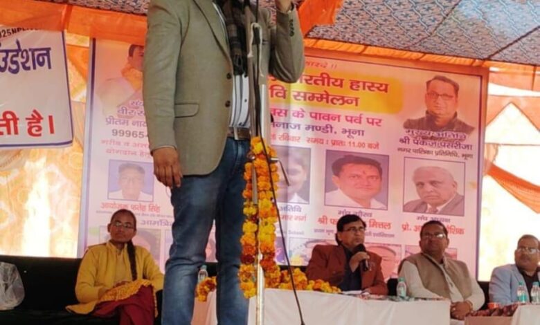 भूना (हरियाणा)।गणतंत्र दिवस के उपलक्ष्य में 25 जनवरी को भूना की अनाज मंडी में नायक एकलव्य हेल्प एण्ड केयर फाउंडेशन, भूना की ओर से भव्य अखिल भारतीय कवि सम्मेलन का आयोजन किया गया। कार्यक्रम में देशभर से आए प्रसिद्ध कवि एवं कवयित्रियों ने अपनी ओजपूर्ण, वीर रस, हास्य और ग़ज़लों की प्रस्तुतियों से श्रोताओं को मंत्रमुग्ध कर दिया। फाउंडेशन के संस्थापक फतेह सिंह ने जानकारी देते हुए बताया कि कवि सम्मेलन का उद्देश्य राष्ट्रीय चेतना, सामाजिक समरसता और साहित्यिक संस्कृति को प्रोत्साहित करना रहा। कार्यक्रम का सफल संचालन वीर रस के चर्चित कवि प्रीतम नायक ने किया, जिन्होंने अपने प्रभावशाली काव्य पाठ से मंच को ऊँचाइयाँ प्रदान कीं और खूब तालियाँ बटोरीं।