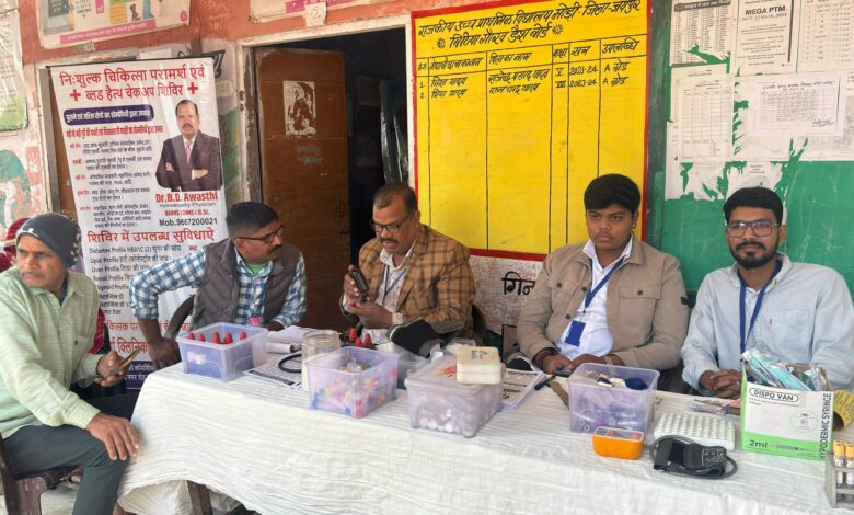 डॉक्टर बी डी अवस्थी द्वारा निशुल्क होम्योपैथी चिकित्सा एवं हेल्थ चेकअप शिविर का आयोजन का आयोजन