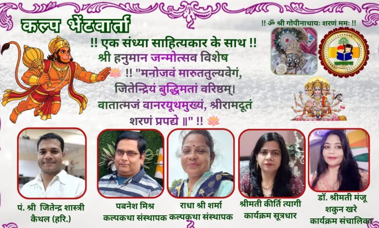 हनुमान जन्मोत्सव हनुमत पूर्णिमा पर्व पर सजा कल्प भेंटवार्ता मंच।